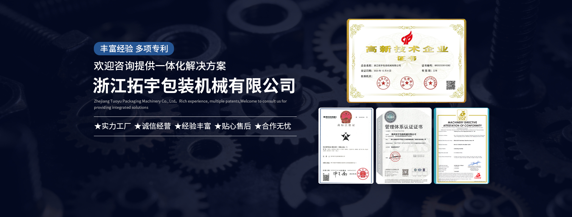 企業(yè)主要產(chǎn)品:多功能全自動(dòng)臥式裝盒機(jī)、食品裝盒機(jī)、藥品裝盒機(jī)。浙江拓宇包裝機(jī)械有限公司將本著"以誠信為本,用戶至上、生存靠質(zhì)量、發(fā)展靠創(chuàng)新"的經(jīng)營(yíng)理念;樹立"用戶需求為已任、客戶利益為初衷"的企業(yè)目標(biāo)。企業(yè)已通過質(zhì)量管理體系9001認(rèn)證,產(chǎn)品獲得歐盟CE認(rèn)證。